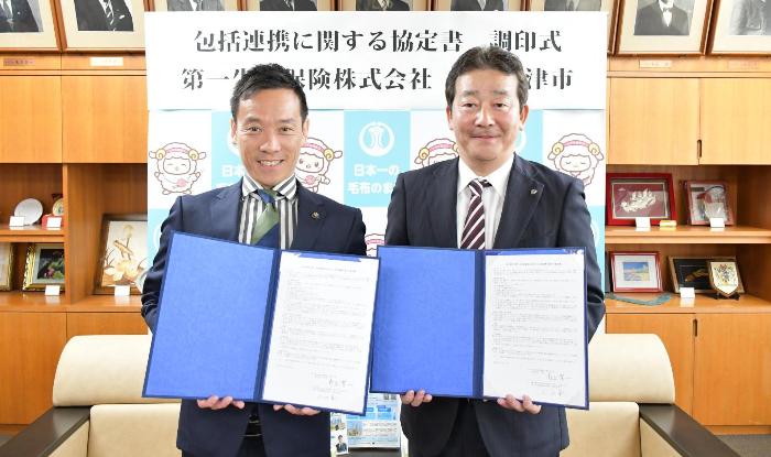 令和6年4月15日に第一生命保険株式会社堺支社と「シティプロモーション」「健康増進」「スポーツ振興」「地域・暮らしの安心安全」「地域活性化」の5分野にわたる包括連携協定を締結しました。