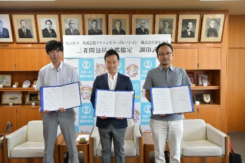 令和5年8月17日に、株式会社グリーンズコーポレーション、株式会社清水音泉と包括連携協定を締結しました。