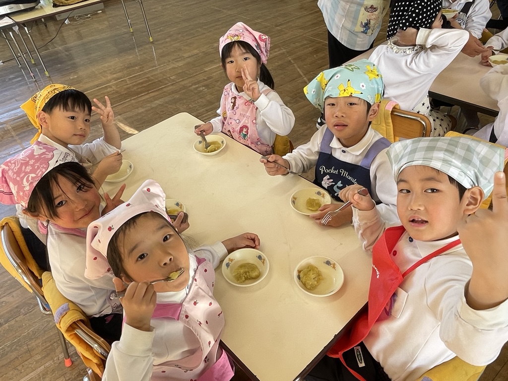 園児から「自分がとったサツマイモを食べれてうれしい。」「自分たちで掘ったサツマイモだから、お店のものよりおいしい。」「またサツマイモ掘りしたい。」など、普段何気なく食べている食べ物への感謝や食に対する興味があふれていました。