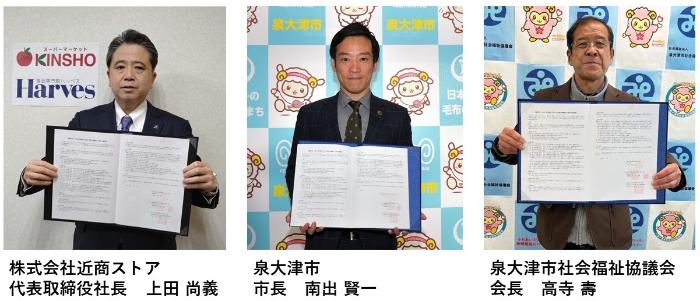 近商ストア、泉大津市社会福祉協議会、泉大津市、三者連携協定を締結(令和4年3月29日)