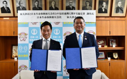 令和5年6月1日に日本生命保険相互会社岸和田支社と4分野にわたる「包括的連携に関する協定書」を締結しました。