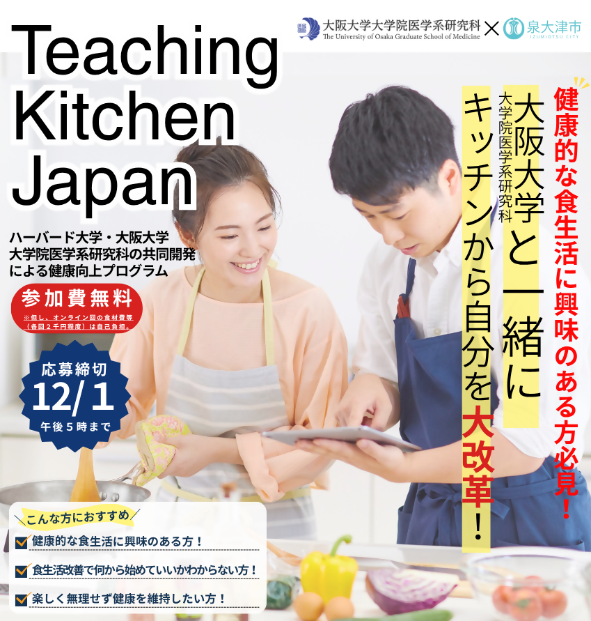 大阪大学大学院医学系研究科と連携し、医学的根拠に基づいた食事・栄養・運動を組み合わせ、食卓からライフスタイルを根本から変えていく実践型プログラム(Teaching Kitchen プログラム)の参加者を募集します!