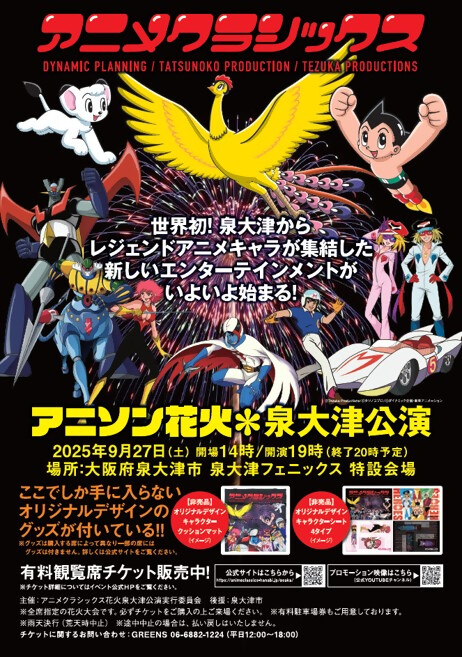 日本を代表する花火文化と名作アニメが融合した新たな花火ライブシリーズ「アニメクラシックス アニソン花火」が9月27日(土曜日)泉大津フェニックスにて開催されます。