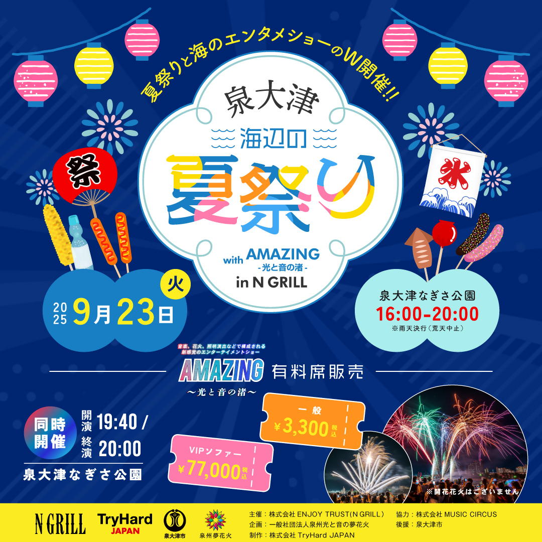 夜には、音楽・照明・花火を融合させた新感覚のエンタメショー「AMAZING-光と音の渚-」が登場。会場となるなぎさ公園の湾内で、幻想的なパフォーマンスが繰り広げられます。今年は【有料観覧席】を設け、より近くで迫力の演出をお楽しみいただけます。