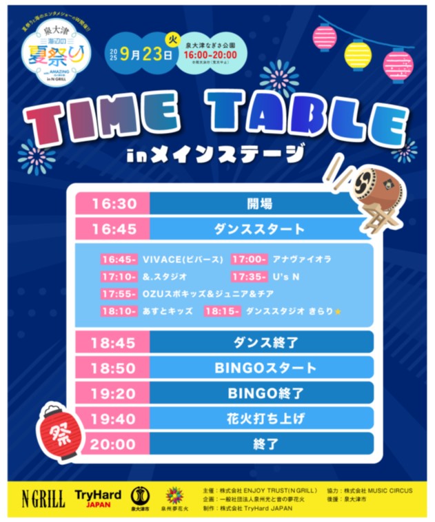 令和7年9月23日(水曜日)16時~20時 雨天決行(荒天中止)