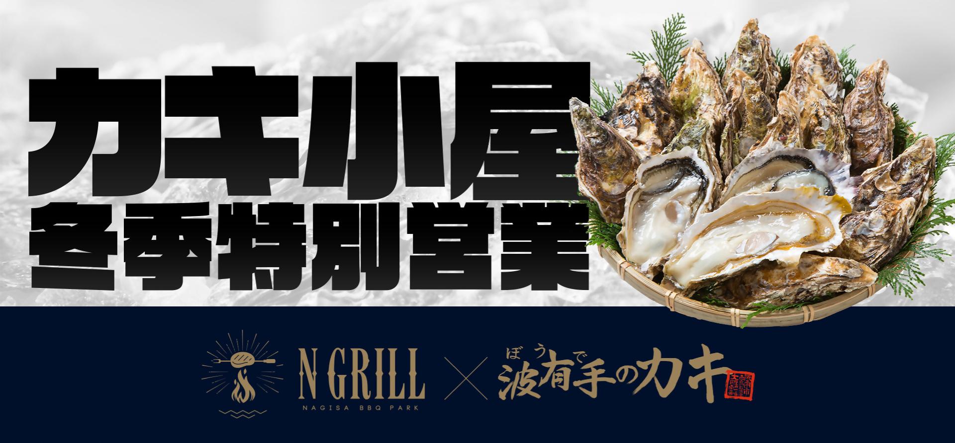 なぎさ公園のN GRILLで、12月7日(土曜日)から3月2日(日曜日)まで、土日祝のみ期間限定の牡蠣小屋イベントが開催中です。