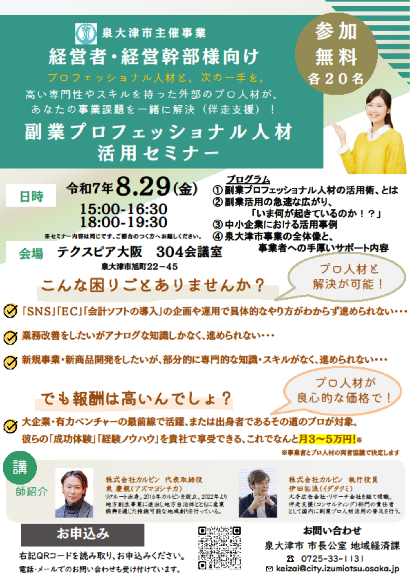 【終了しました】経営者・経営幹部の方必見!令和7年度副業プロフェッショナル人材活用セミナーを開催します!