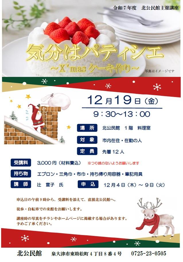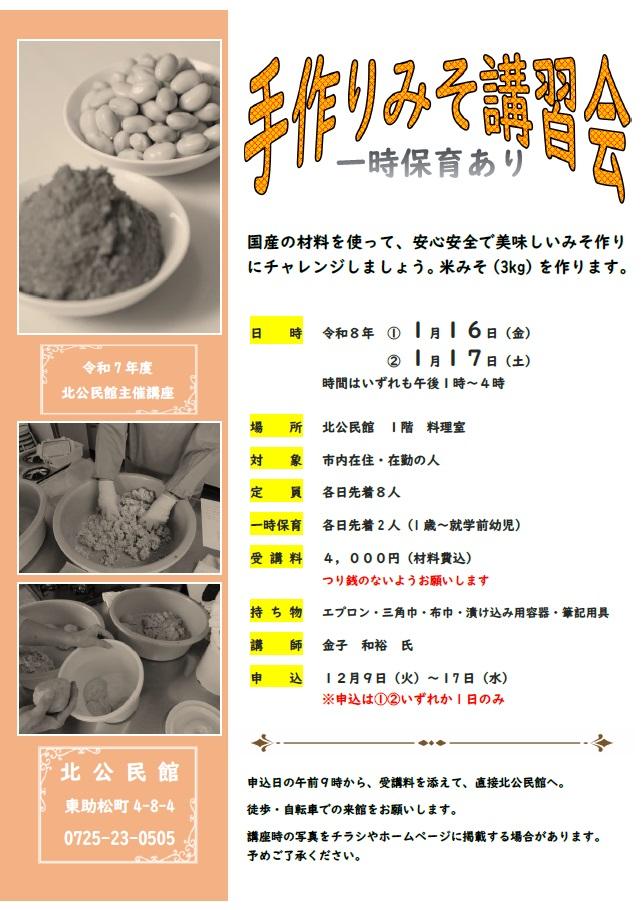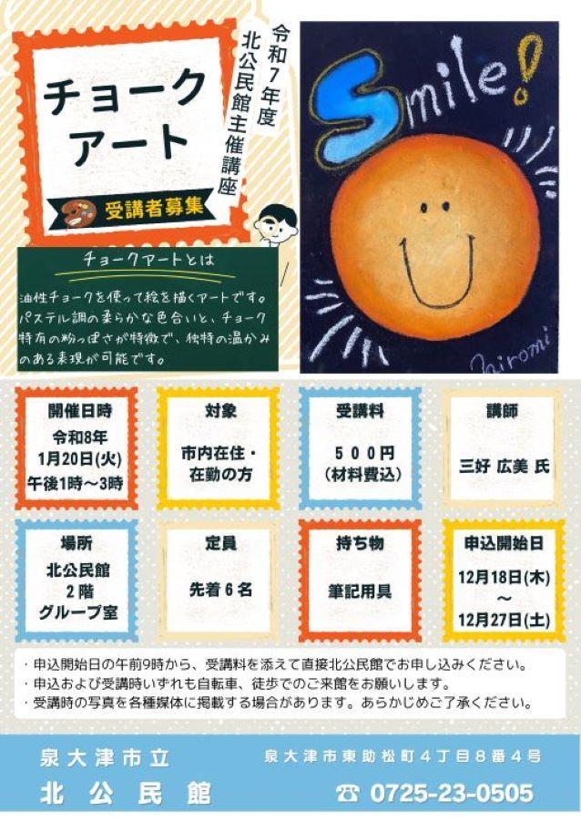 申込日の午前9時から受講料を添えて直接北公民館へ。