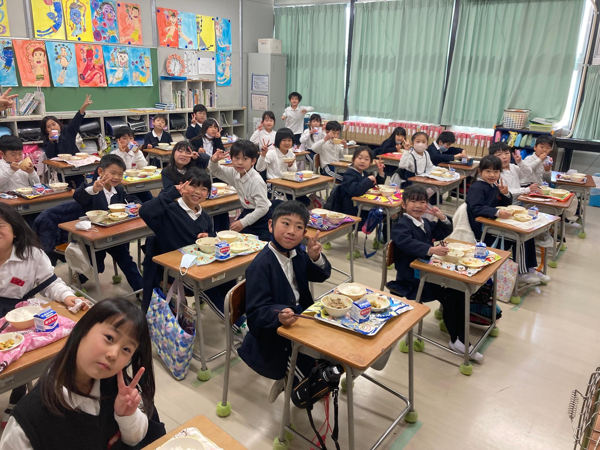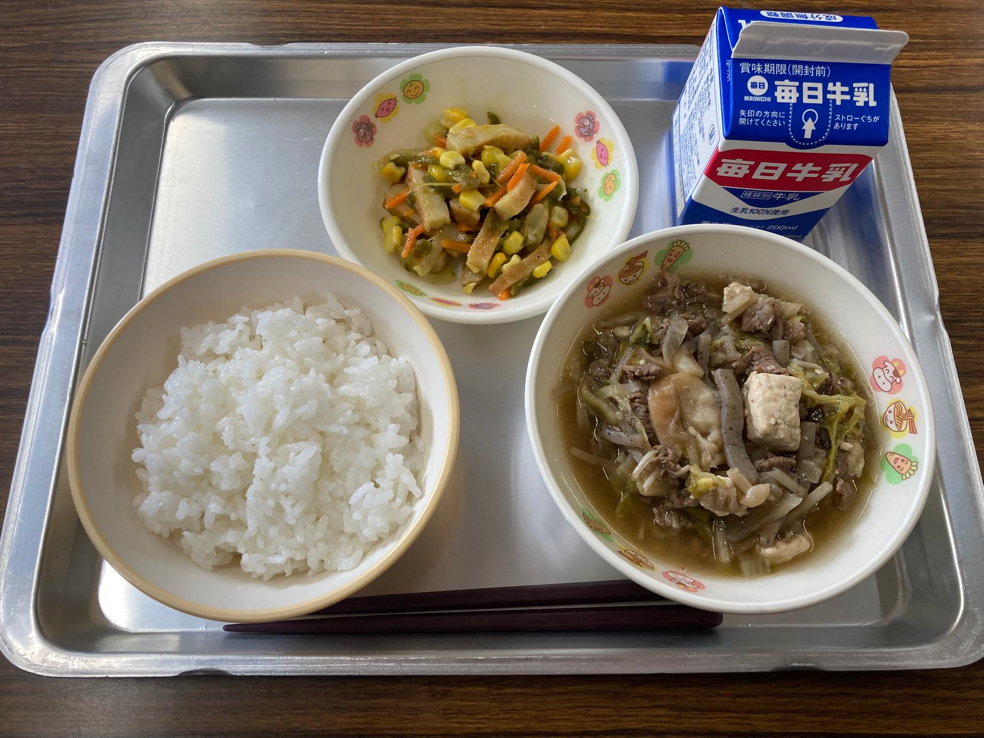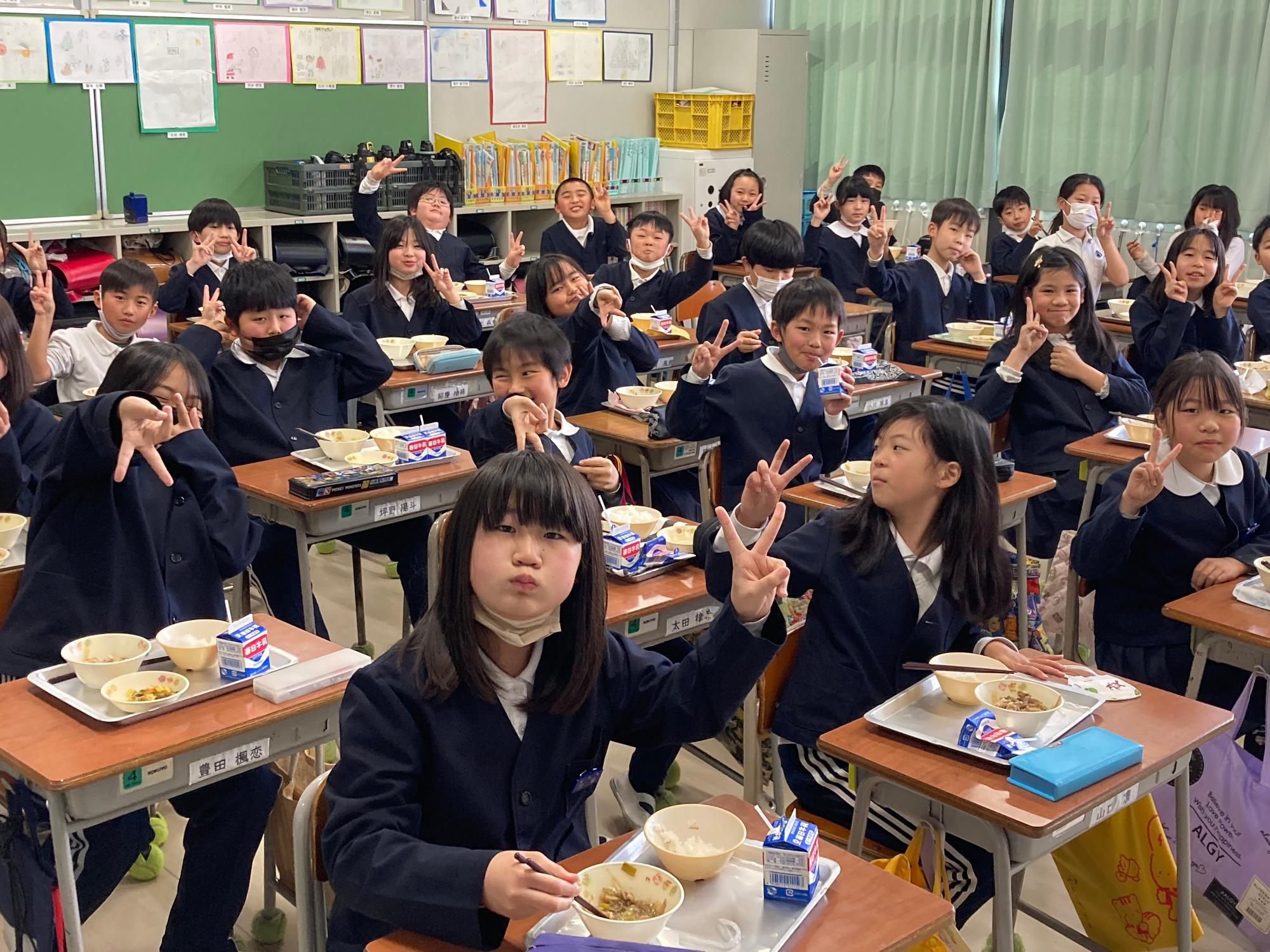 写真は令和5年1月18日(金曜日)の給食で、条東小学校の児童が食べている様子です。
