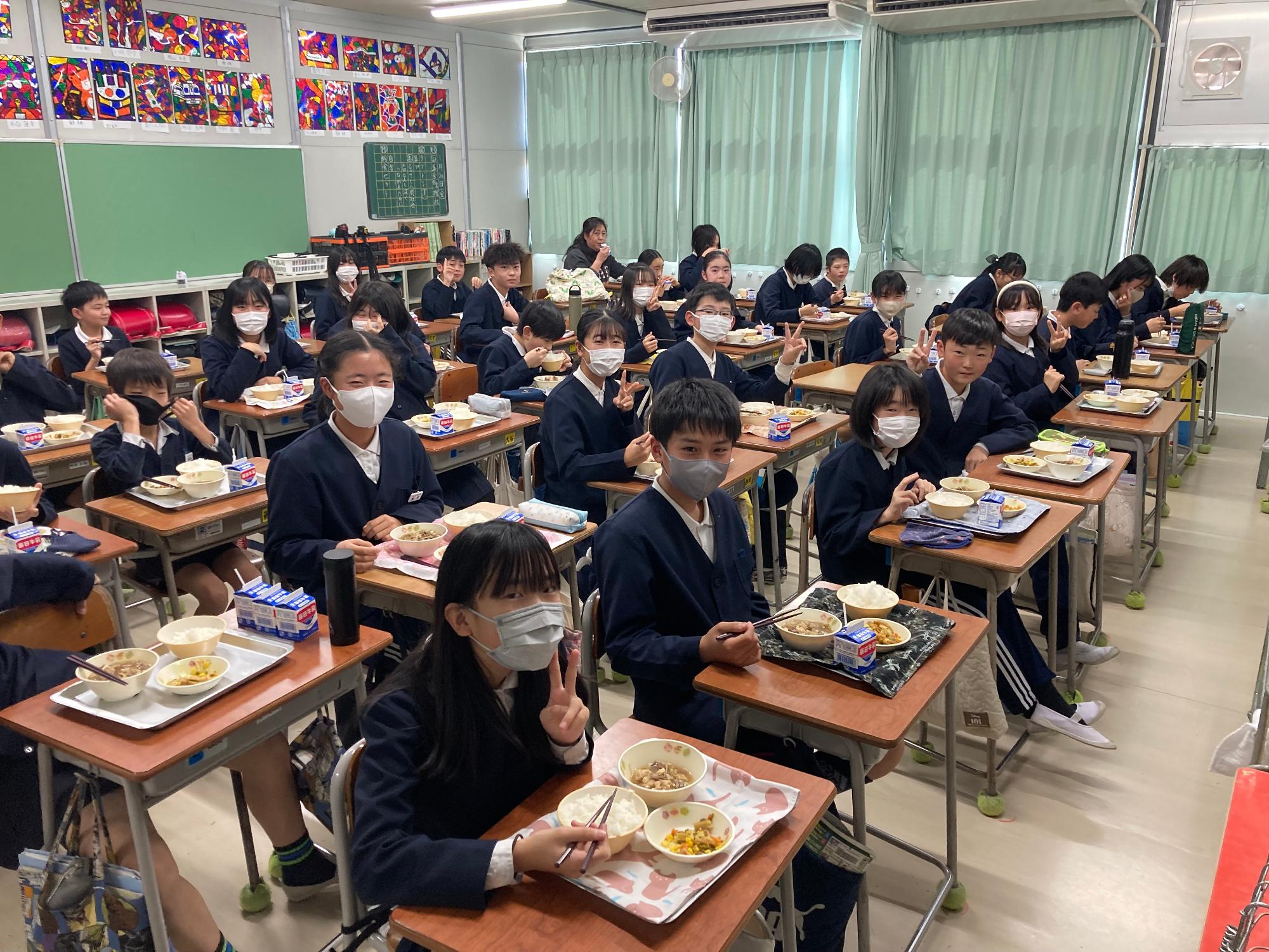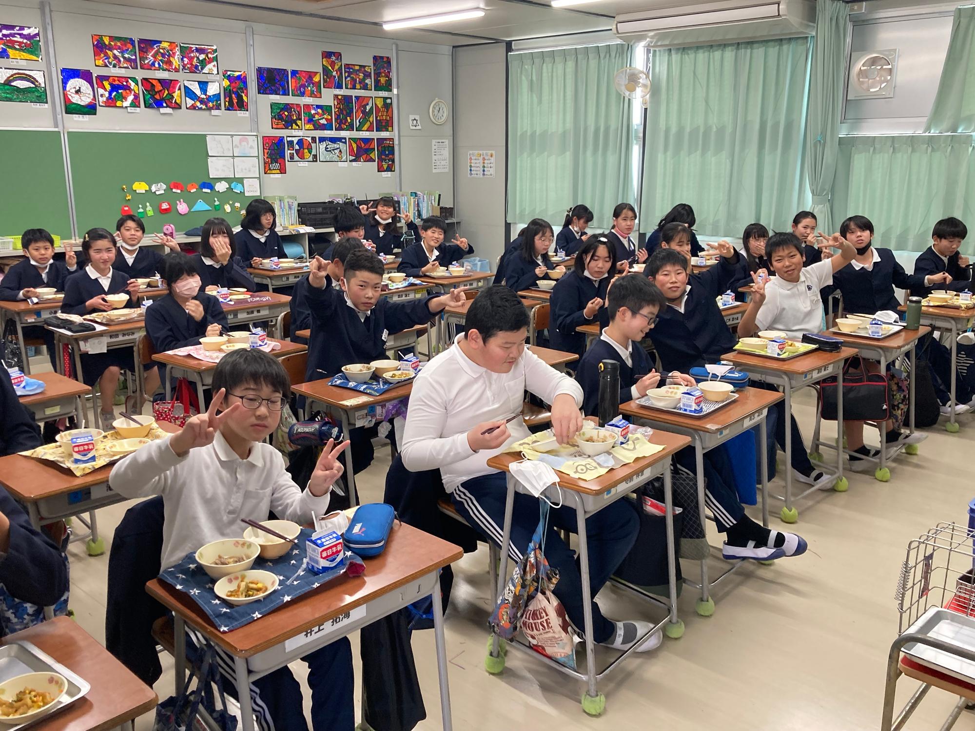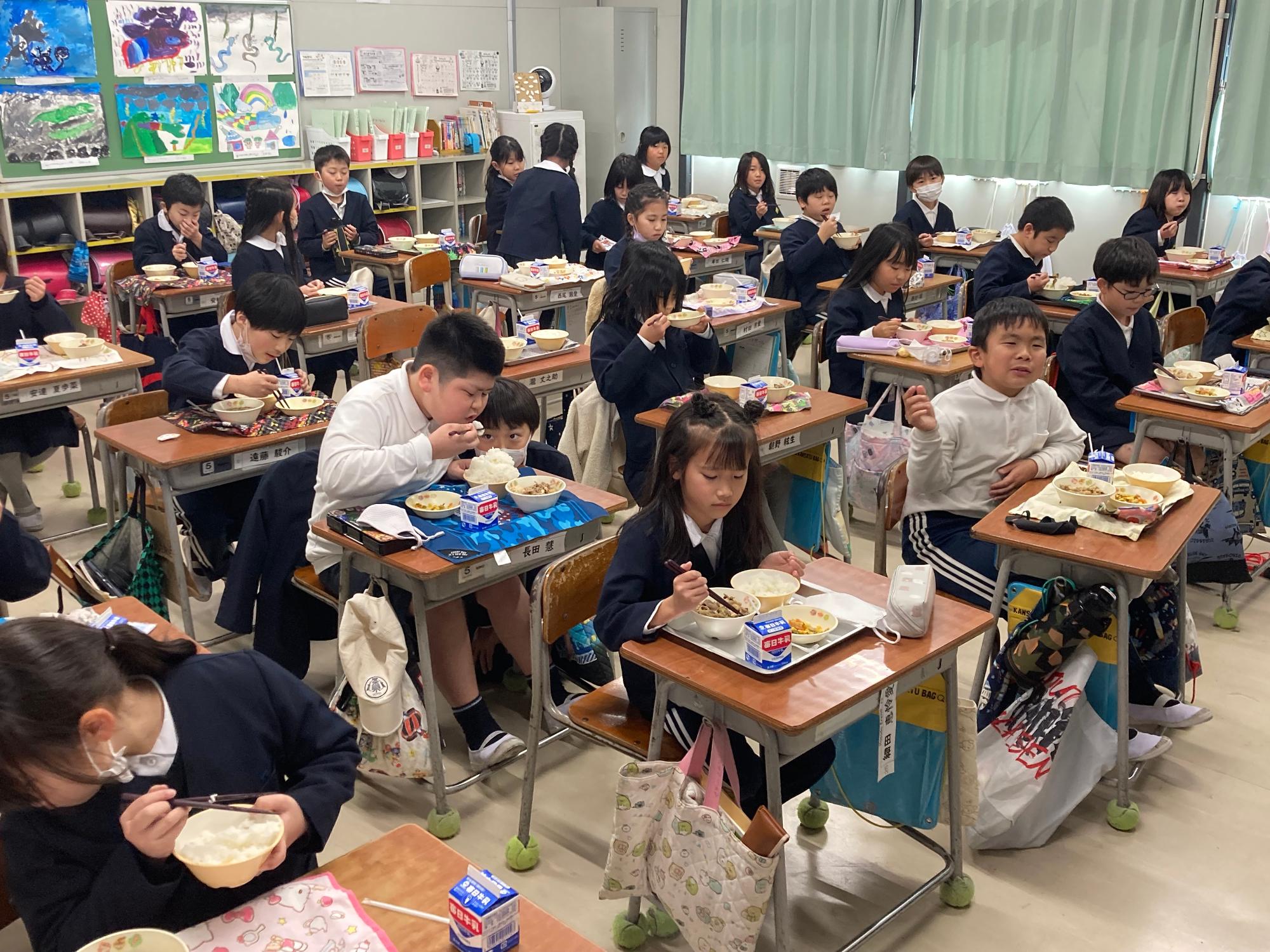 写真は令和5年1月18日(金曜日)の給食で、条東小学校の児童が食べている様子です。
