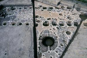 - 集落中心に位置する、大型掘立柱建物と大型くり抜き井戸