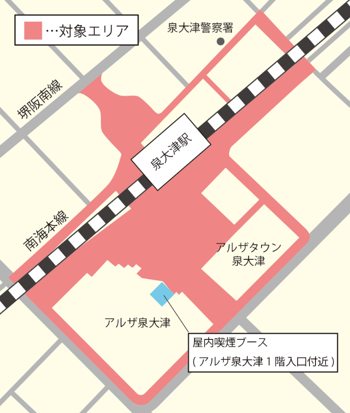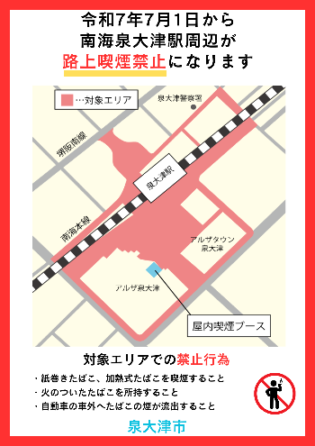 令和7年7月1日から、南海泉大津駅周辺は、路上喫煙禁止区域です
