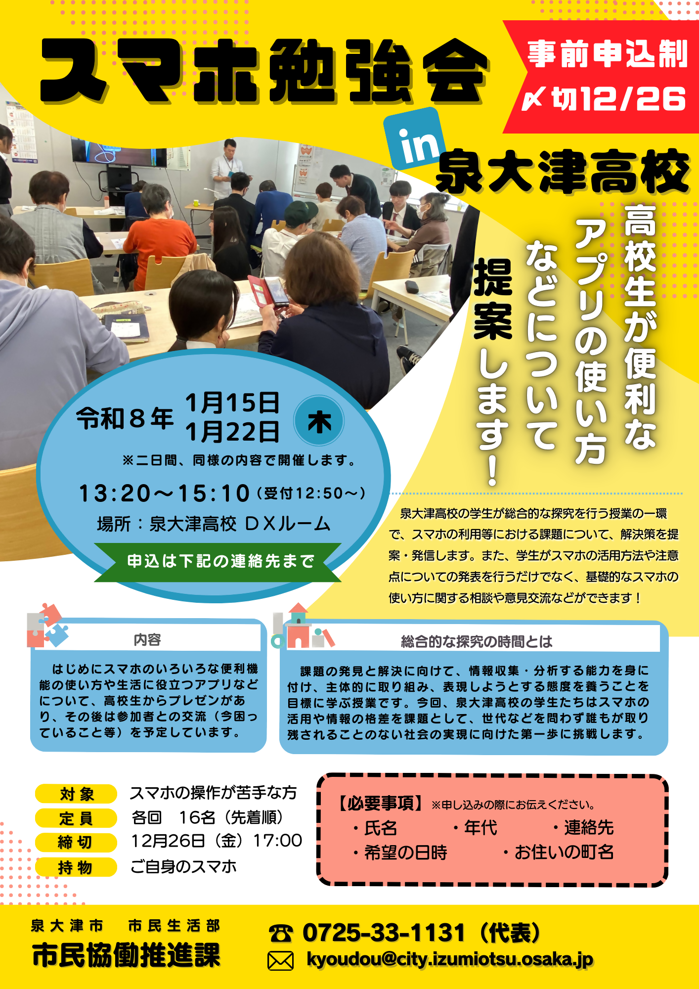 泉大津高校の生徒が総合的な探究を行う授業の一環で、スマートフォン利用などの課題について、解決策を提案・発信します。
