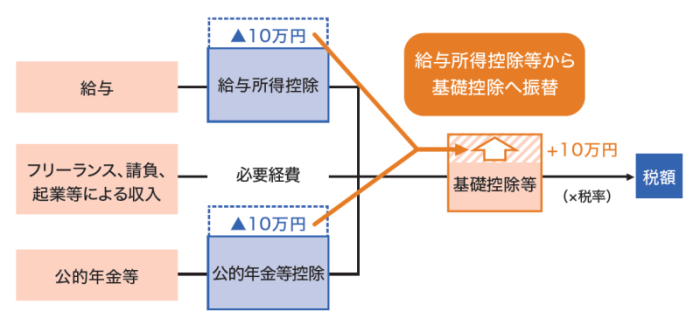 1.給与所得控除・公的年金等控除から基礎控除への振替