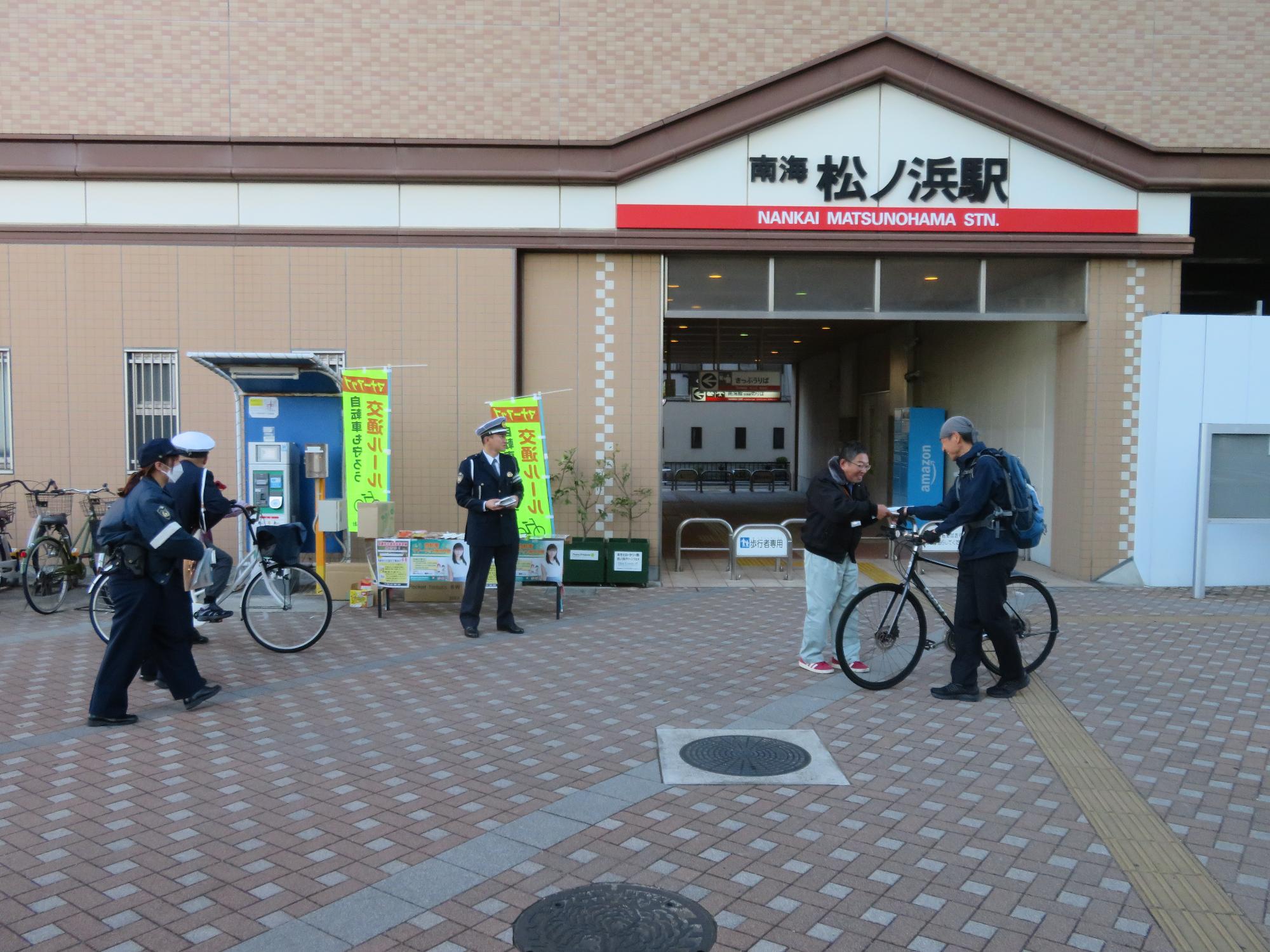 自転車利用強化月間として、自転車利用者のマナーアップが望まれている現状をとらえ、泉大津駅・松ノ浜駅でマナーアップキャンペーンを実施しました。
