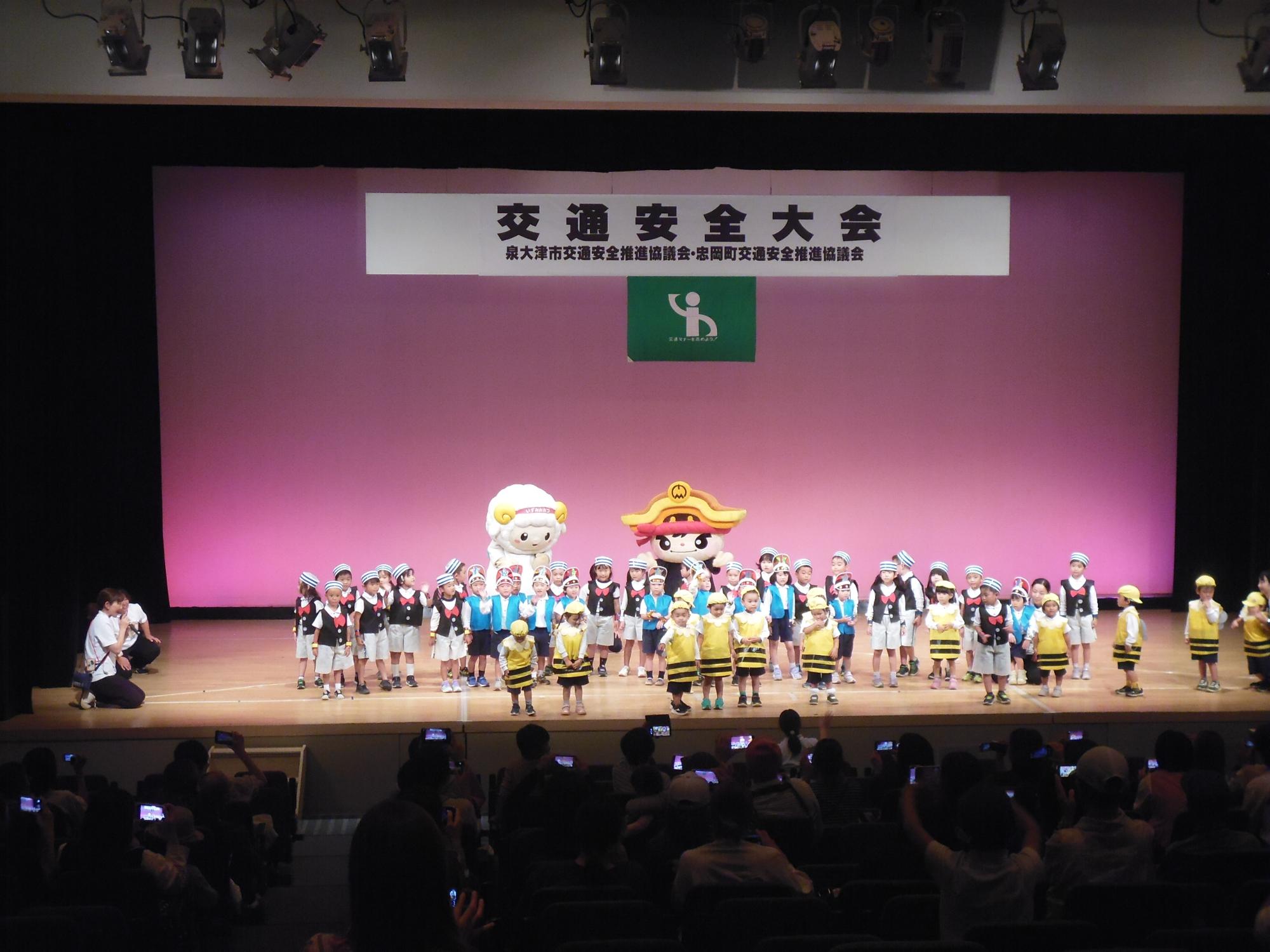 令和5年10月11日にテクスピア大阪にて、泉大津市交通安全推進協議会と忠岡町交通安全推進協議会ならびに泉大津警察署と泉大津交通安全協会と共同で交通安全大会を開催しました。 第1部では、表彰式 第2部では旭幼稚園児によります演技等で会場を盛り上げていただきました。大会参加人数 250名