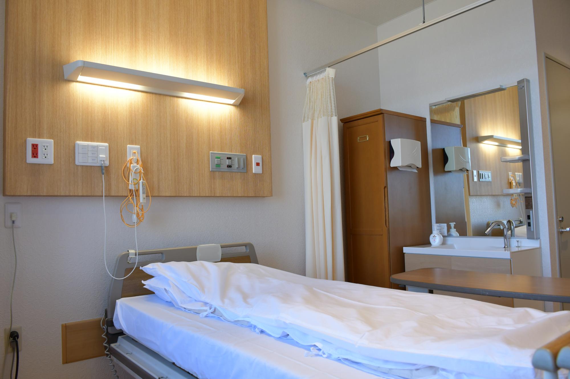 これまで室料差額として6,000円/日(市内)・8,000円/日(市外)が必要だった産婦人科病棟の「個室料金を無料」とします。さらに、無料個室よりも広く、ゆっくり過ごせ、個室内にシャワーを設置している有料個室も用意しています。