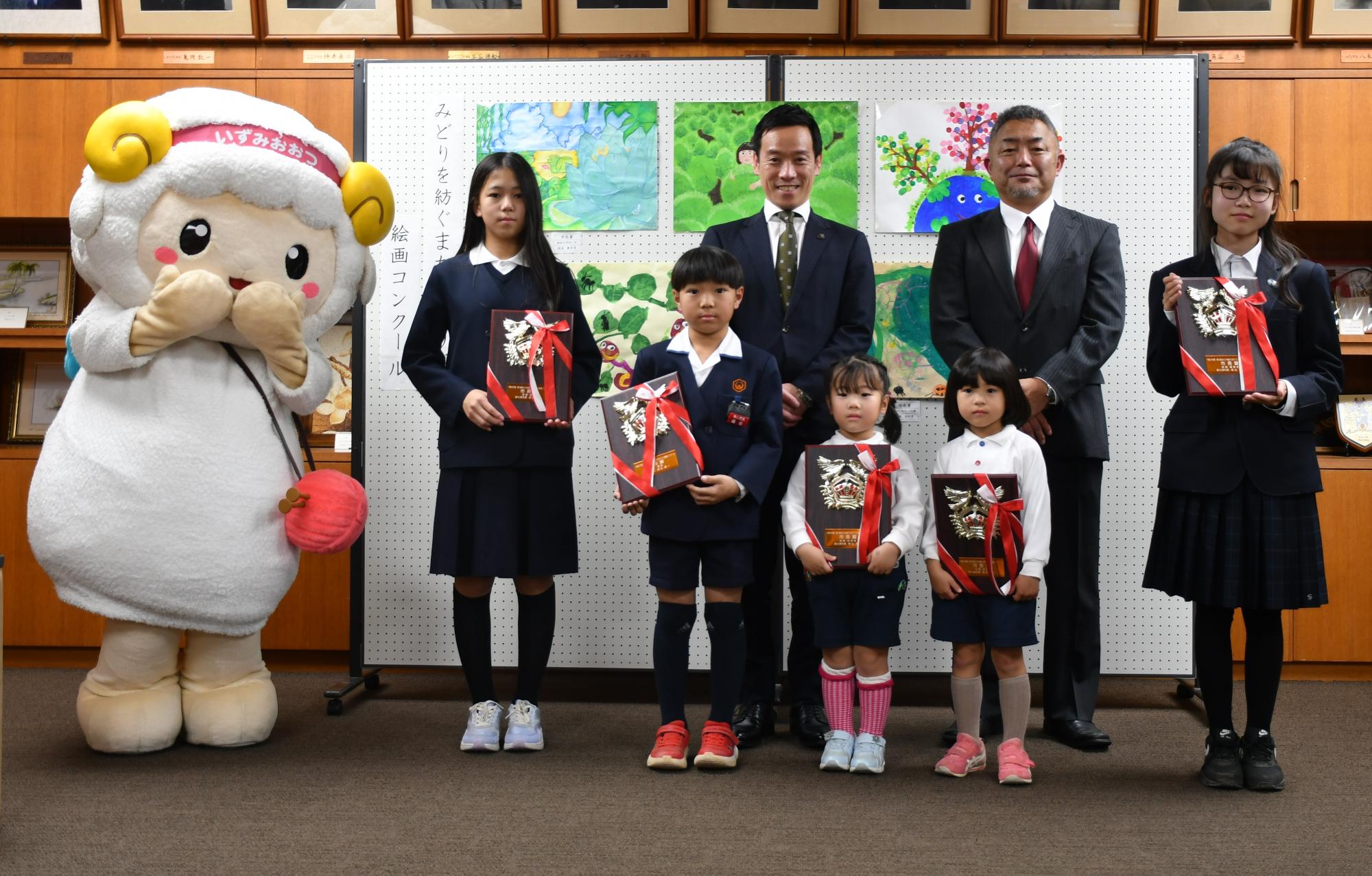 11月22日(金曜日)に市長応接室で、「みどりを紡ぐまちづくり絵画コンクール」の表彰式に参加してきた羊~!