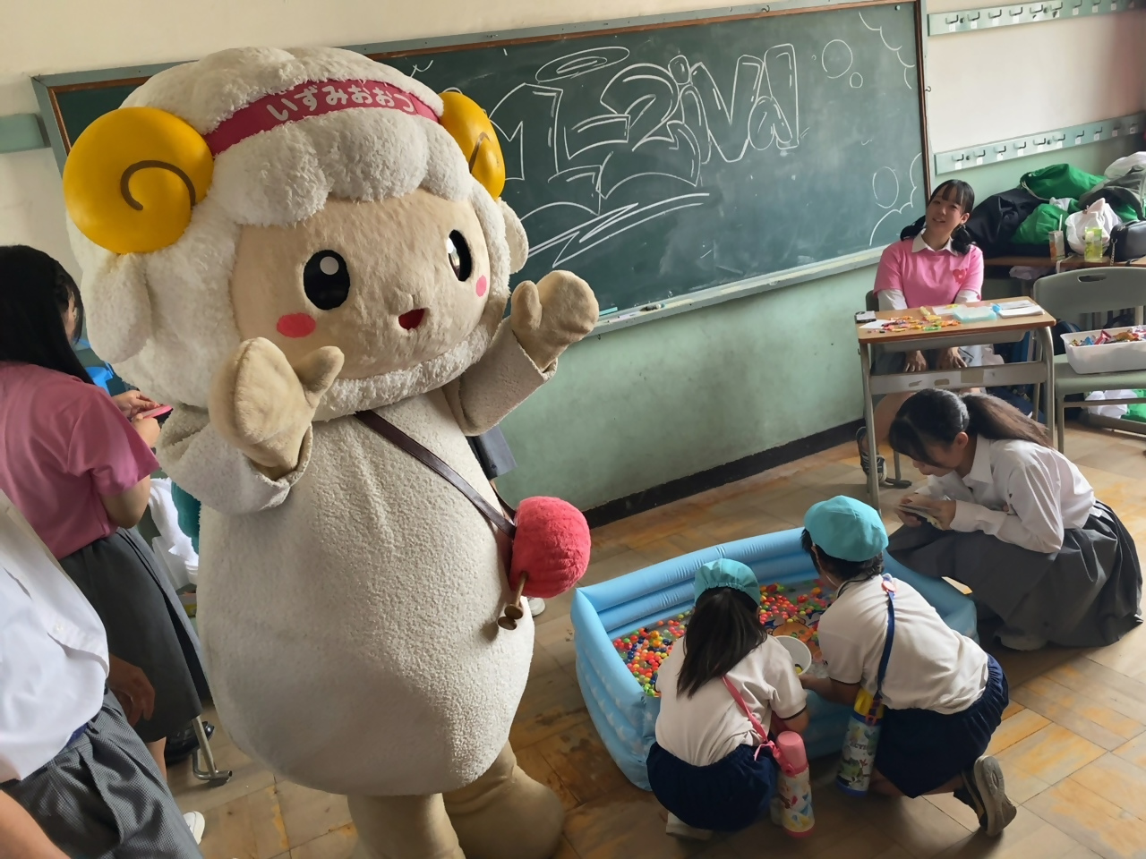 遊びに来ていた園児たちと「縁日」で一緒に遊んだり、高校生のステージや食品バザーで頑張ってる姿を見てきた羊~。