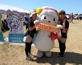去年に続いて、大阪府広報担当副知事もずやんも会場に来てくれて、一緒に写真を撮ったよ!! 泉大津市のブースでは、おづみんグッズやひざかけ毛布、タオルなどを販売したから、おづみんもお手伝いを頑張ったんだよ~♪