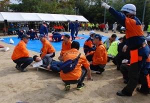 東雲公園で開催された「令和元年度泉大津市総合防災訓練」に参加してきた羊~! 消防・警察・自衛隊のかっこいい車や白バイの展示や、いろいろな防災ブース・体験ブースがをおづみんも体験してきた羊~ 給食訓練のカレーのいい匂いがしてたなぁ。訓練の最後には消防・自衛隊の救助訓練があって、かっこよかったな~