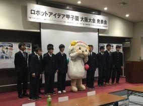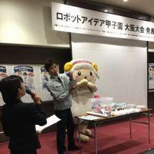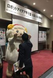 高校生が出場した、ロボットアイデア甲子園 大阪大会 発表会に、おづみんが応援に行ったよ~ 素敵なロボットグッズ・おづみんグッズが当たる抽選会で、プレゼンターとしてもり盛り上げたんだ!! 審査委員の南出市長とハイタッチ!