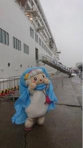2019年4月10日(水曜日)堺泉北港「大浜第5号岸壁」でクルーズ船のお出迎えをした羊!! クルーズ船は近くで見ると本当に大きかったなぁ~@◎ェ◎@ おづみんグッズの販売や、泉大津のPR活動をしておづみんがんばったんだ羊~!! 当日は雨が降っていて寒かったけど、お気に入りのレインコートを着て歓迎セレモニーやお見送りイベントで盛り上げた羊♪♪