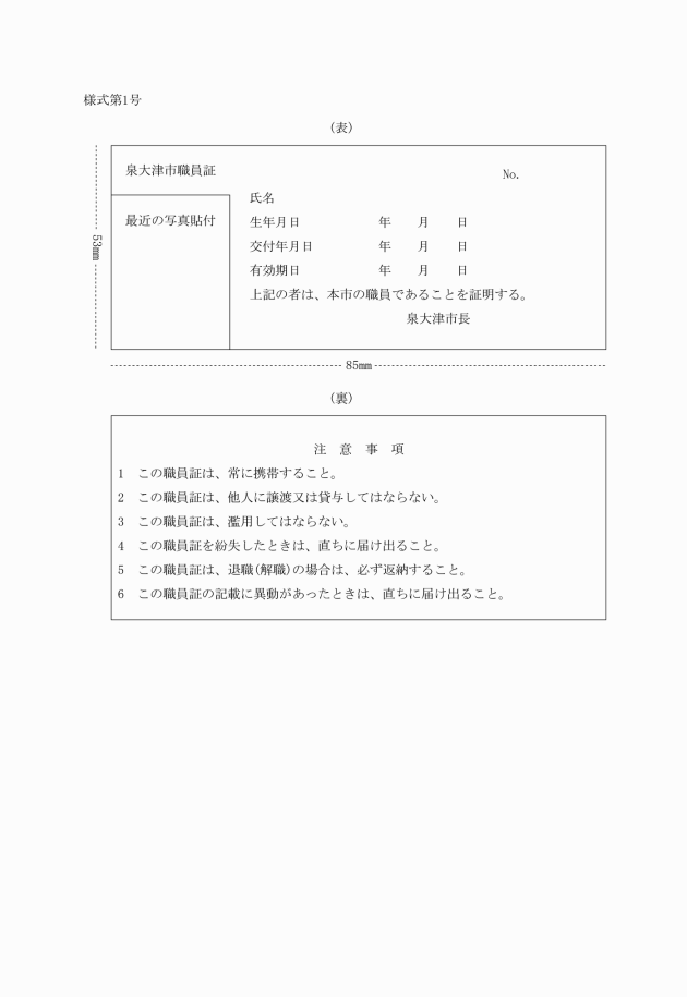 第1条 本市職員の身分を明らかにするための職員証については、この規程の定めるところによる。