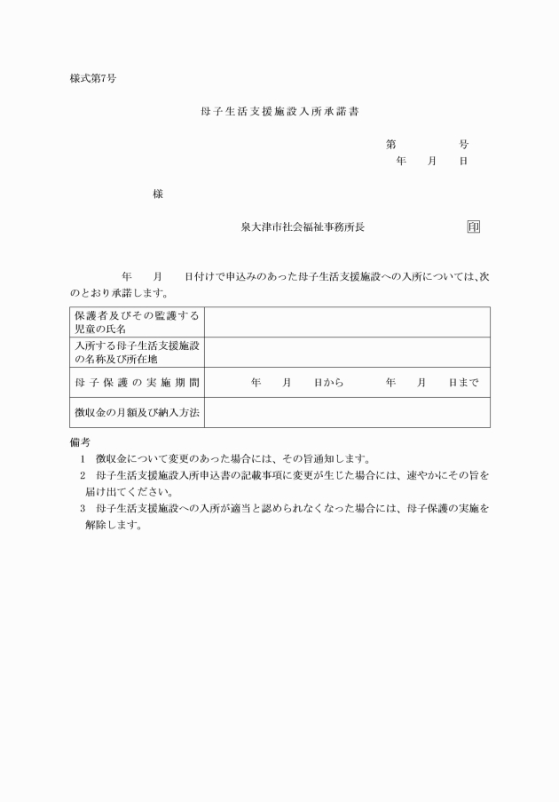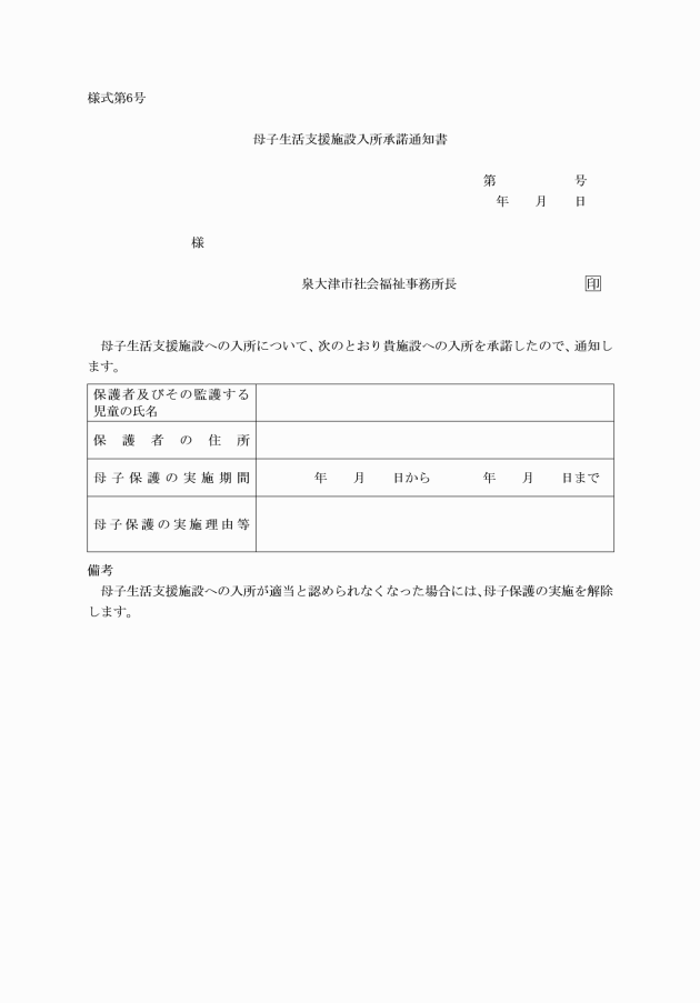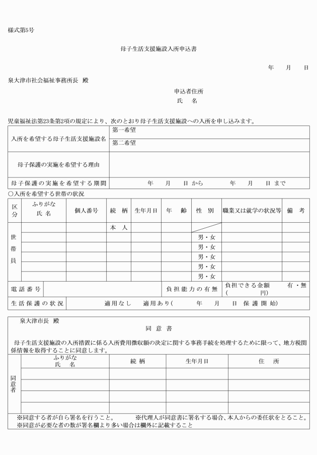 第3条 法第23条第2項の規定による母子保護の実施を希望する者は、母子生活支援施設入所申込書(様式第5号)を福祉事務所長に提出しなければならない。