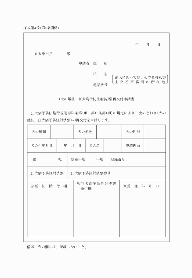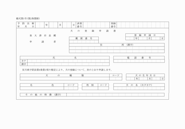 第2条 規則第3条第1項の申請書は、犬の登録申請書(様式第1号)とする。