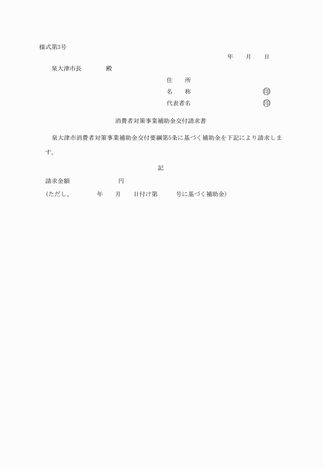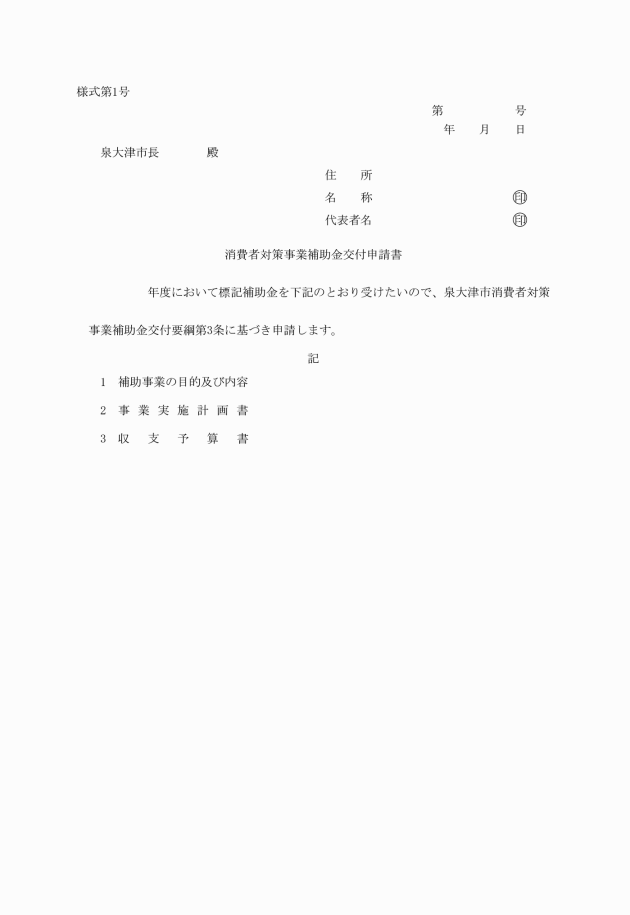 第3条 補助金を受けようとする団体等は、補助金交付申請書(様式第1号)を市長に提出しなければならない。