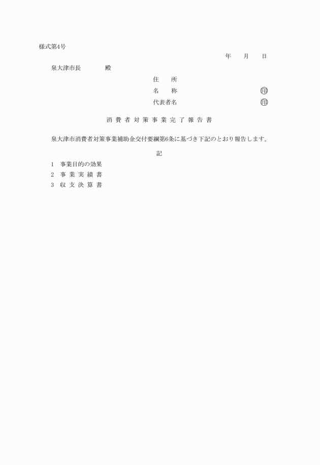第6条 団体等は事業完了後30日以内に事業完了報告書(様式第4号)を市長に提出しなければならない。