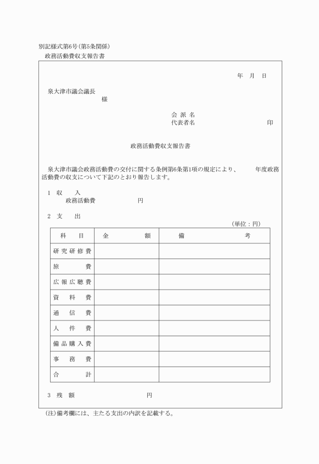 ○泉大津市議会政務活動費の交付に関する規則