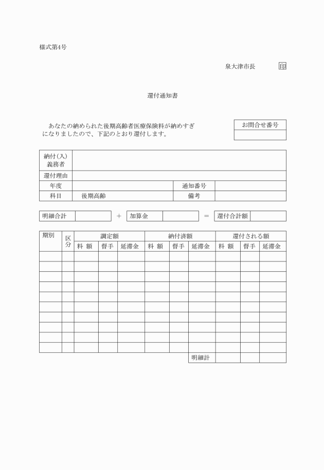 (4) 還付通知書(様式第4号)