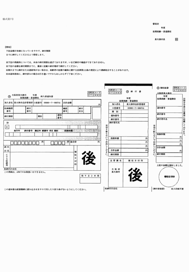 ○泉大津市後期高齢者医療に関する条例施行規則