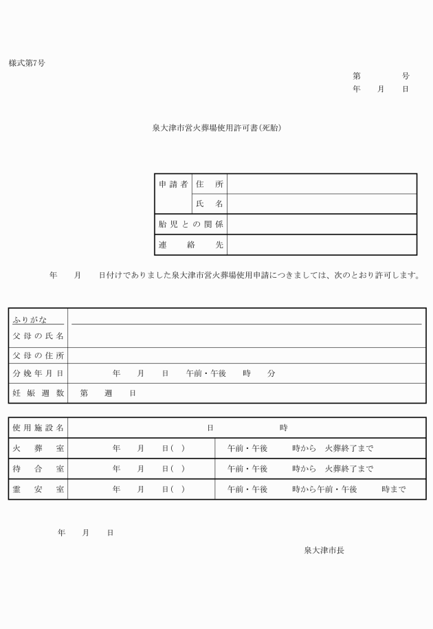 (2) 死胎 火葬許可書及び泉大津市営火葬場使用許可証(死胎)(様式第7号)