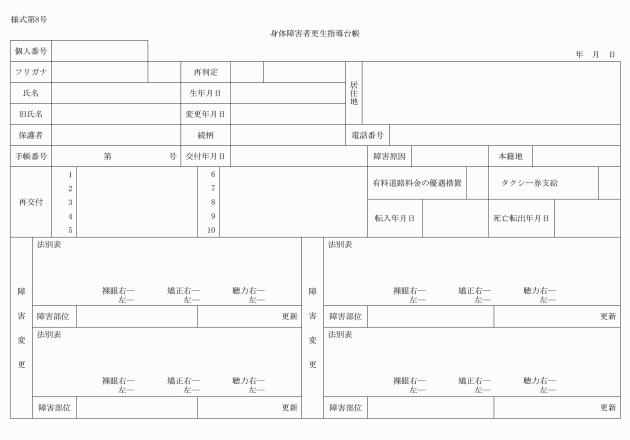 第8条 政令第9条第2項及び第4項の規定による届出は、身体障害者手帳交付申請(届)書(様式第1号)によるものとする。