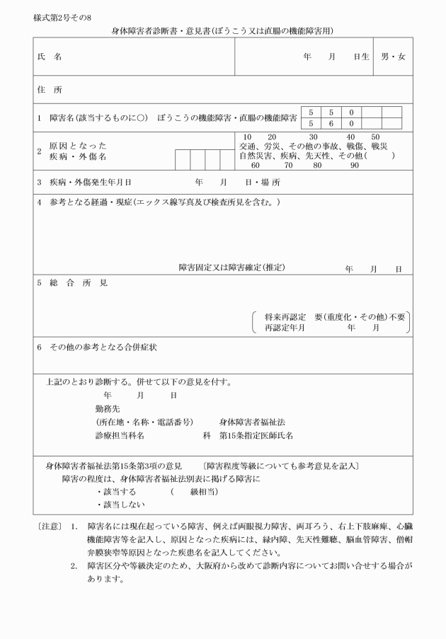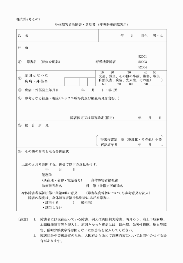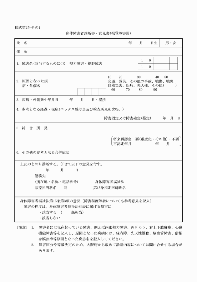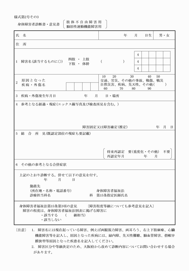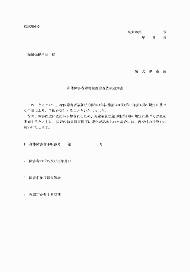 第3条 政令第5条第1項の規定による諮問は、身体障害者手帳諮問書(様式第3号)により大阪府知事に依頼するものとする。