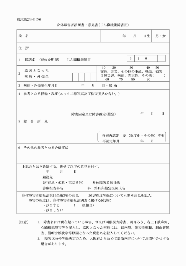 2 政令第6条第2項の規定による通知は、身体障害者障害程度診査依頼通知書(様式第6号)によるものとする。