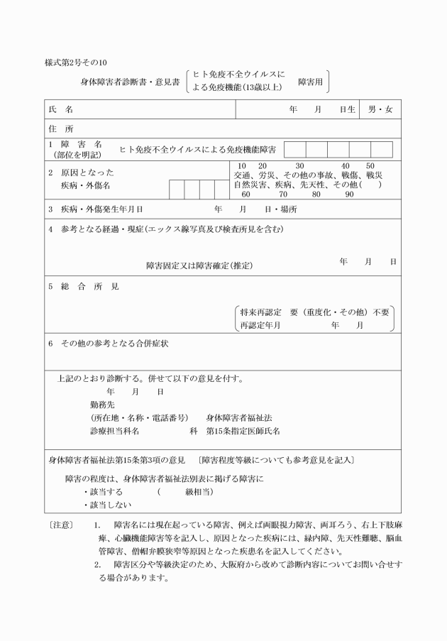 第10条 法第16条第1項、省令第7条第2項及び第8条第2項の規定による申請は、身体障害者手帳交付申請(届)書(様式第1号)によるものとする。