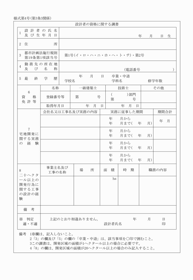 3 省令第17条第1項第4号に規定する書類は、設計者の資格に関する調書(様式第4号)とする。