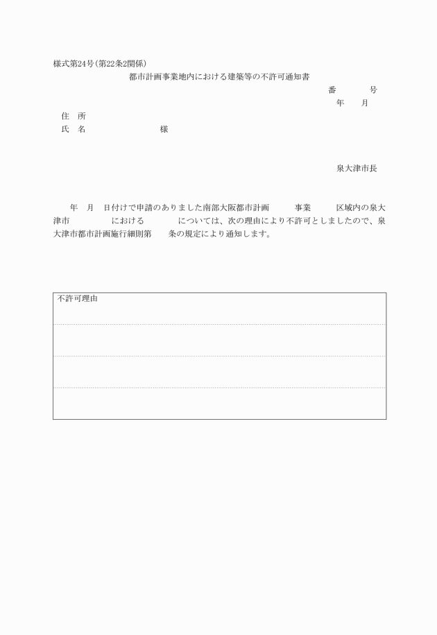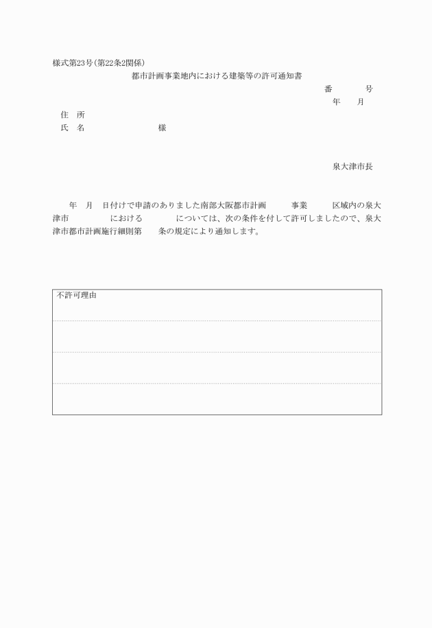 (都市計画事業地内における建築等の許可又は不許可の通知)