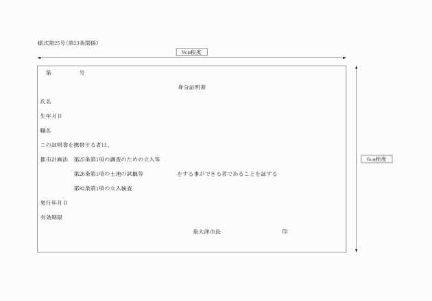 第23条 法第27条第1項、第2項及び法第82条第2項に規定する身分証明書は、様式第25号による。