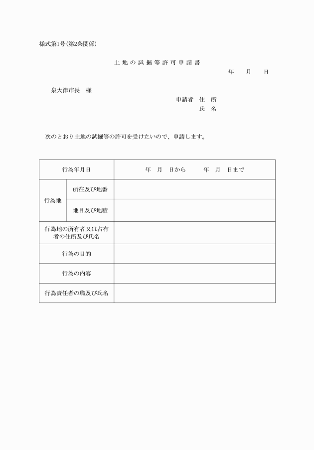 (土地の試掘等の許可申請)