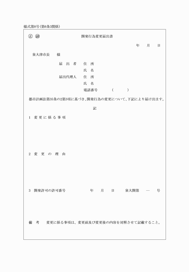3 法第35条の2第3項の規定による届出は、開発行為変更届出書(様式第8号)を提出することにより行わなければならない。
