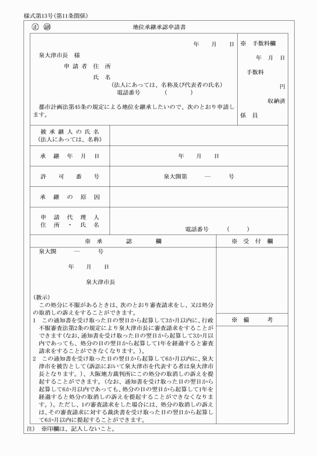第11条 法第45条の承認の申請は、地位承継承認申請書(様式第13号)を提出することにより行わなければならない。