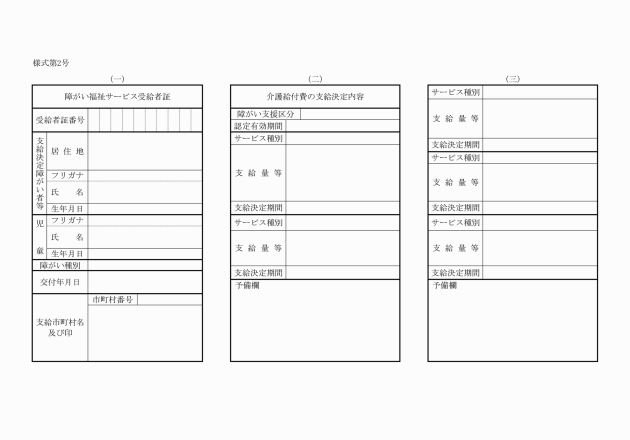 第3条 法第22条第8項の規定により支給決定障害者等に交付する障害福祉サービス受給者証(以下「受給者証」という。)は、様式第2号とする。