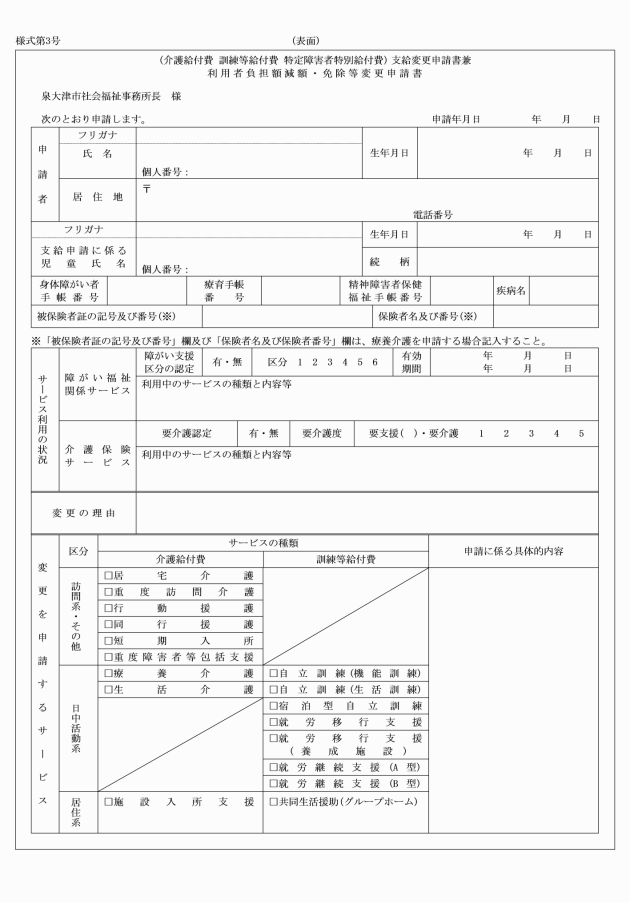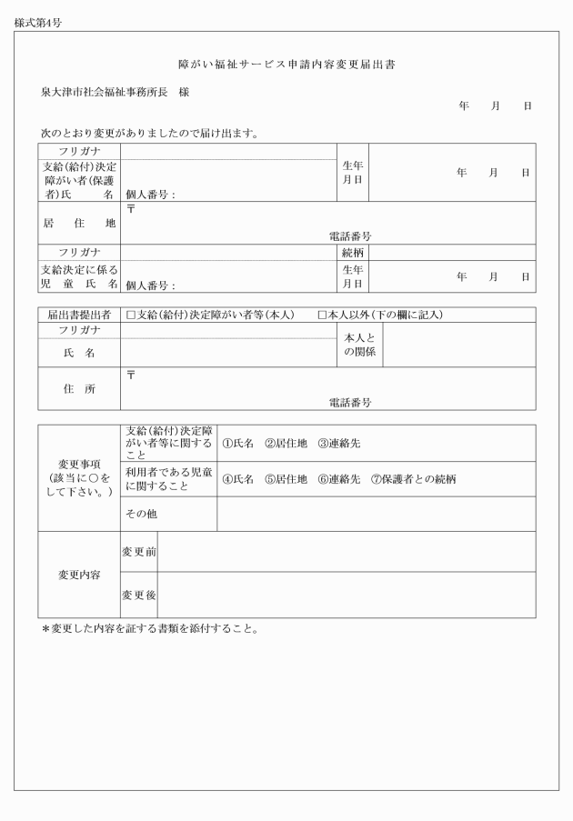 第4条 省令第17条の規定による支給決定の変更の申請書は、様式第3号とする。
