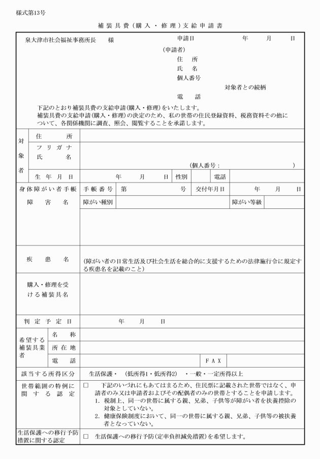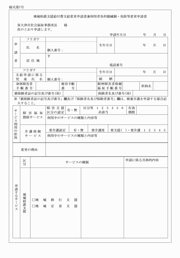 第13条 省令第34条の44の規定による給付決定の変更の申請書は、様式第7号とする。