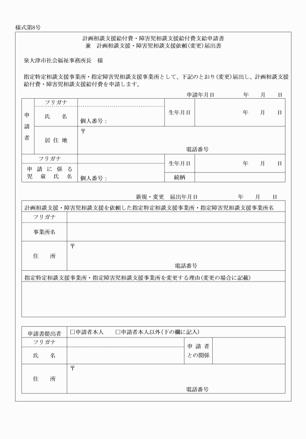 第16条 省令第34条の54第1項の規定による計画相談支援給付費の支給の申請書は、様式第8号とする。